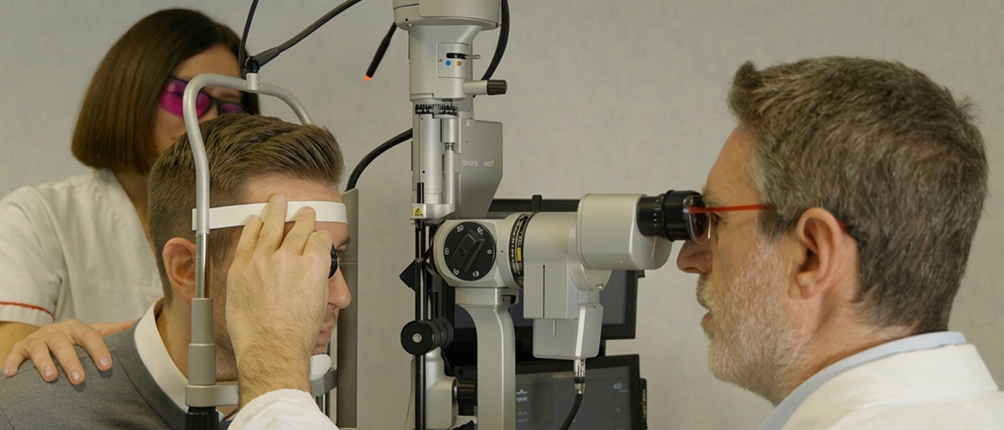 La fotocoagulazione laser retinica è indicata nella retinopatia diabetica proliferativa, nel trattamento di rotture retiniche e nelle occlusioni venose. La nostra Unità dispone di laser di ultima generazione con modalità micropulsata, che permette di trattare la retina in modo selettivo riducendo al minimo i danni ai tessuti circostanti. La terapia fotodinamica (PDT) combina un farmaco fotosensibilizzante con un laser non termico per chiudere selettivamente i vasi anomali, ed è utilizzata in particolare nella corioretinopatia sierosa centrale cronica e in alcune forme di maculopatia.